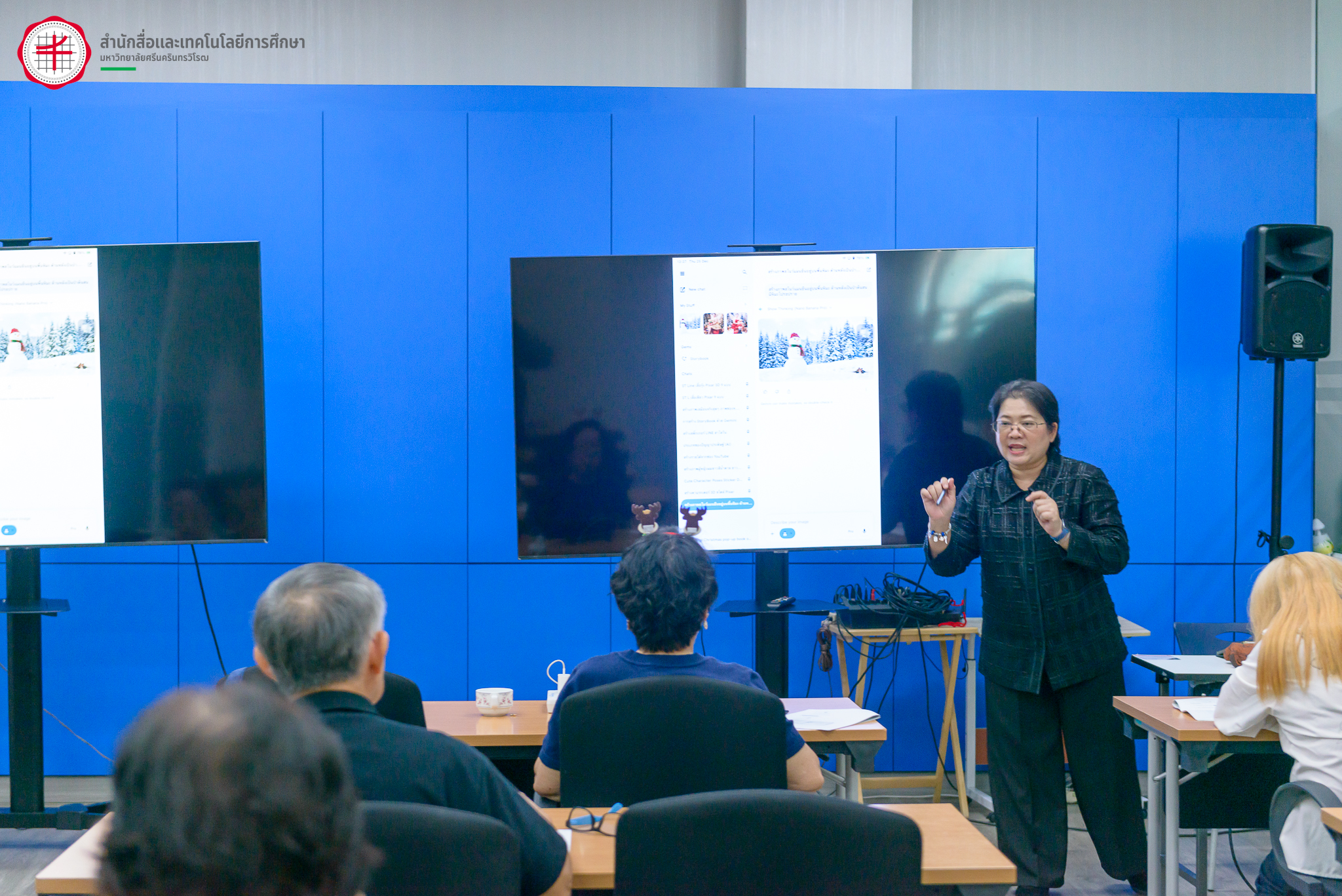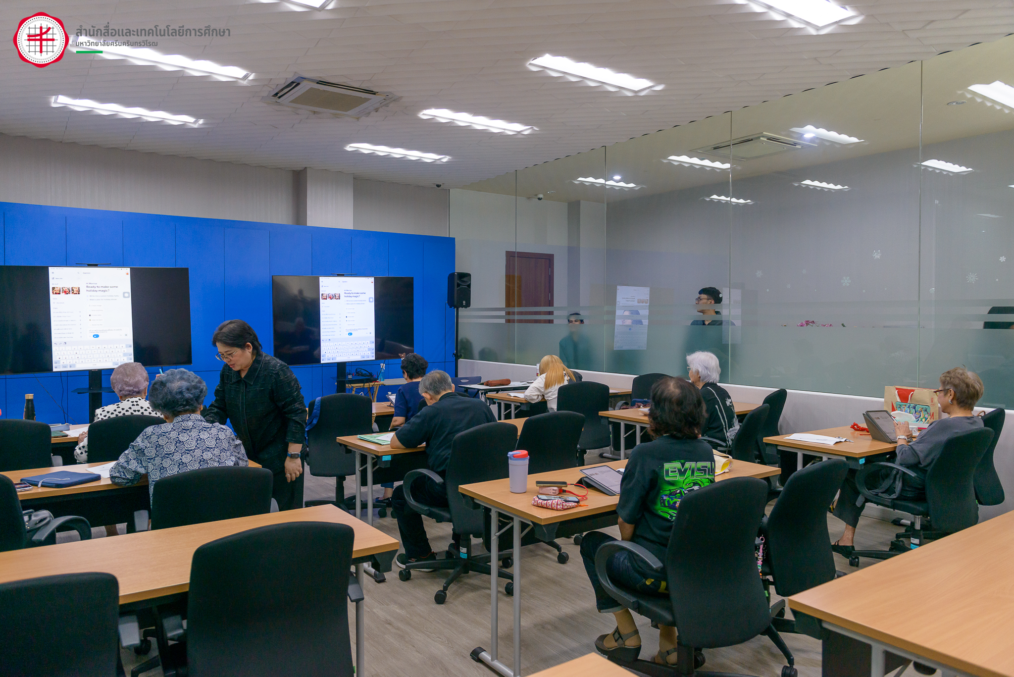 วันที่ 25 ธันวาคม 2568 รองศาสตราจารย์ ดร.กัมปนาท บริบูรณ์ ผู้อำนวยการสำนักสื่อและเทคโนโลยีการศึกษา รองศาสตราจารย์ ดร.หทัยรัตน์ มาประณีต รองผู้อำนวยการฝ่ายบริหารและนวัตกรรมการศึกษา และบุคลากรสำนักสื่อฯ ได้เข้าร่วมโครงการมหาวิทยาลัยวัยที่สาม มศว การฝึกอบรมความรู้เบื้องต้นแก่คณะกรรมการดำเนินงานโครงการมหาวิทยาลัยวัยที่สาม มศว (SWU3a) หัวข้อ การออกแบบกิจกรรมการเรียนรู้สำหรับผู้สูงอายุ ณ ชมรมคอมพิวเตอร์และอินเทอร์เน็ตเพื่อผู้สูงวัย กรุงเทพมหานคร