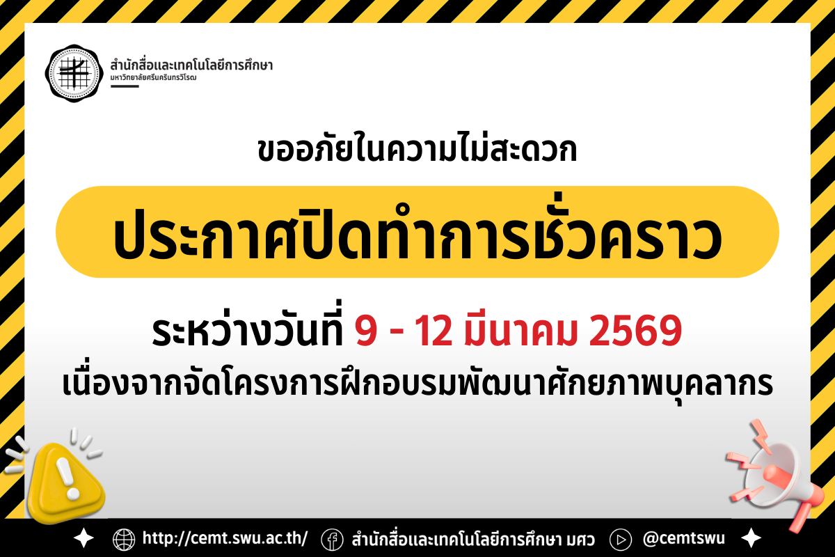 📢 ประกาศอีกครั้งสำนักสื่อและเทคโนโลยีการศึกษางดให้บริการชั่วคราว ⛔️